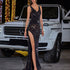 Bold and glamorous, this sequin cutout maxi dress features a daring slit and a sleek fit. Perfect for formal evenings where elegance meets allure.