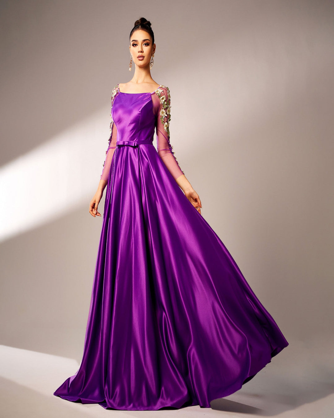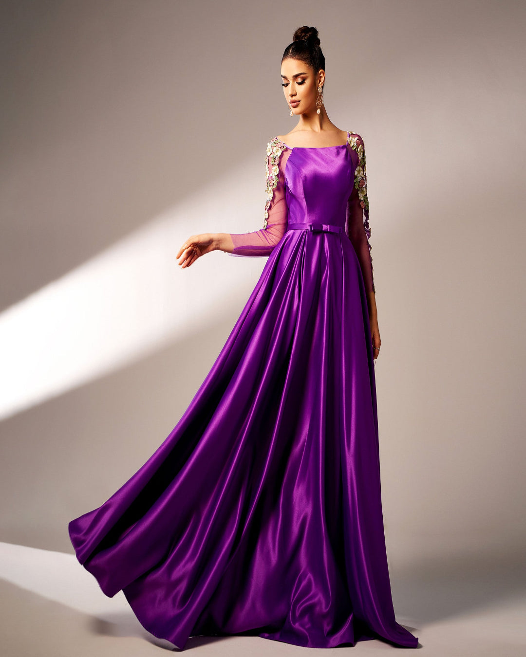 Elegant maxi dress with lace details, slim fit and square neckline — designed for formal occasions with timeless sophistication.