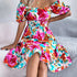 Charming and airy, this floral midi dress features a smocked bodice, ruffled hem, and short sleeves—ideal for warm days and romantic moments.