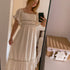 A romantic silhouette with a square neckline, puff sleeves, and soft ruffle trims. This maxi dress flows with elegance, ideal for refined daytime outings or special evenings.