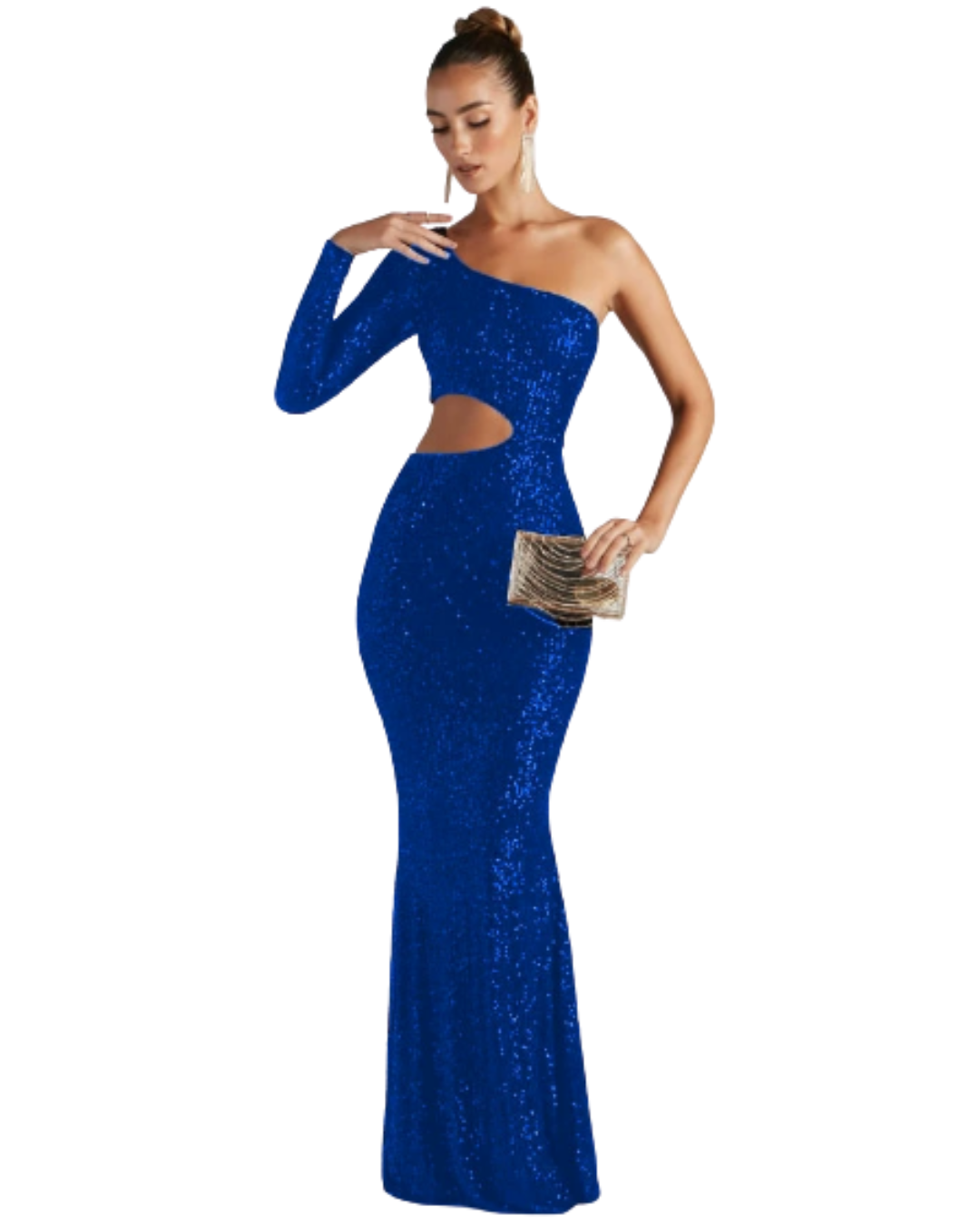 Glamorous one-shoulder sequin maxi dress featuring a striking asymmetric silhouette and bold cutout accents — an irresistible choice for elegant evenings in spring and fall.