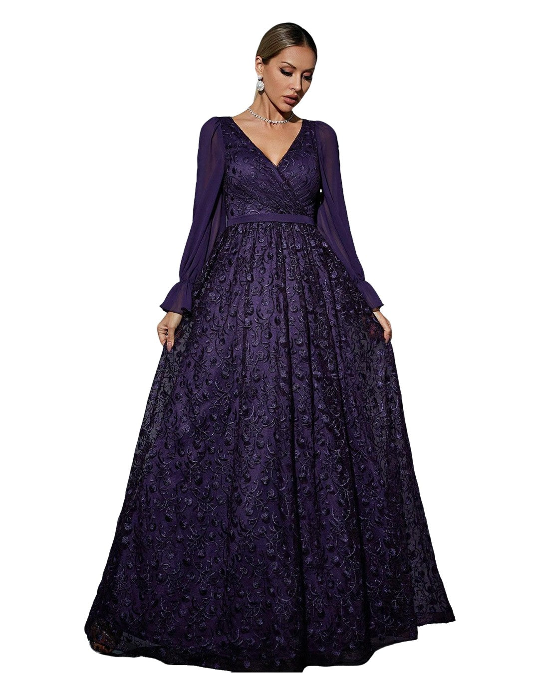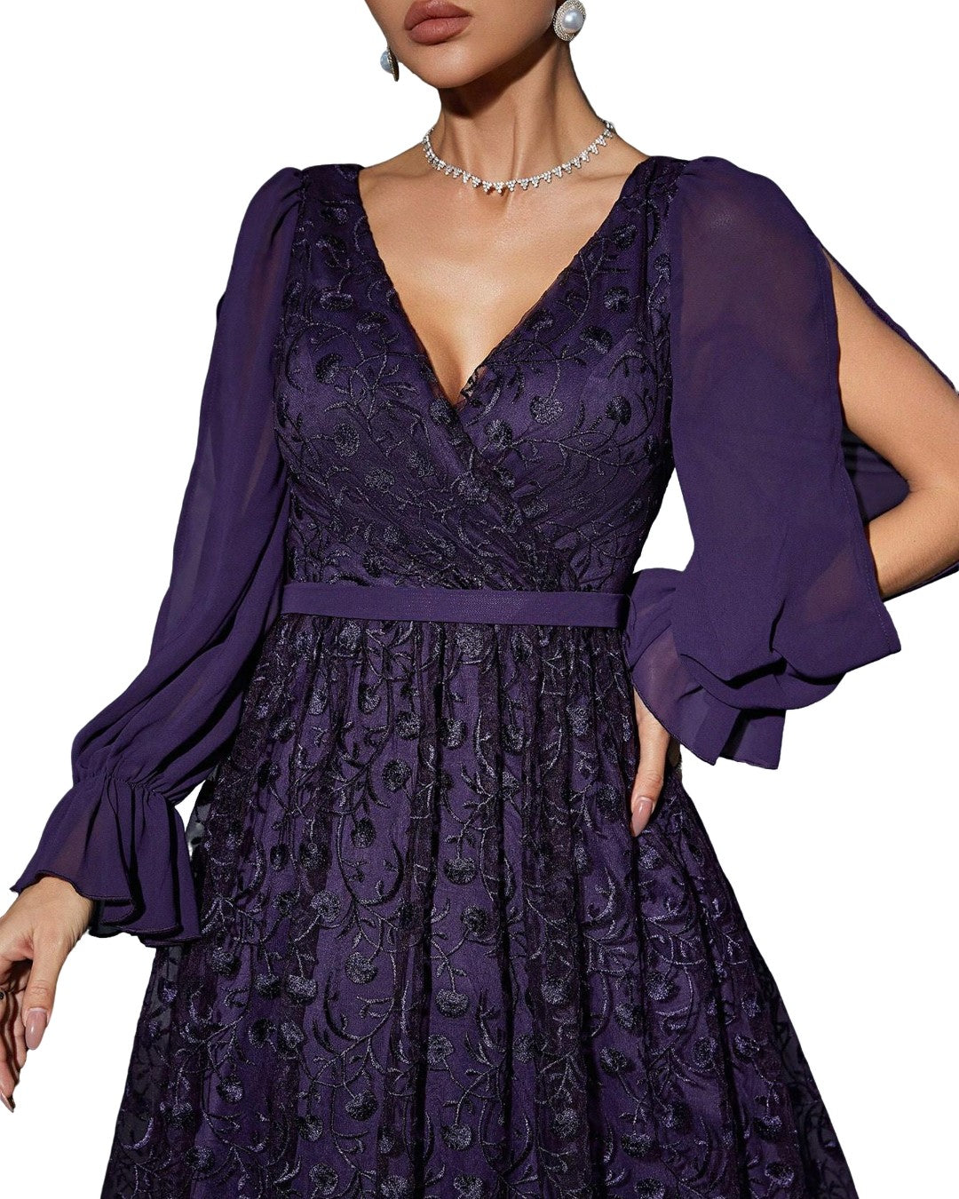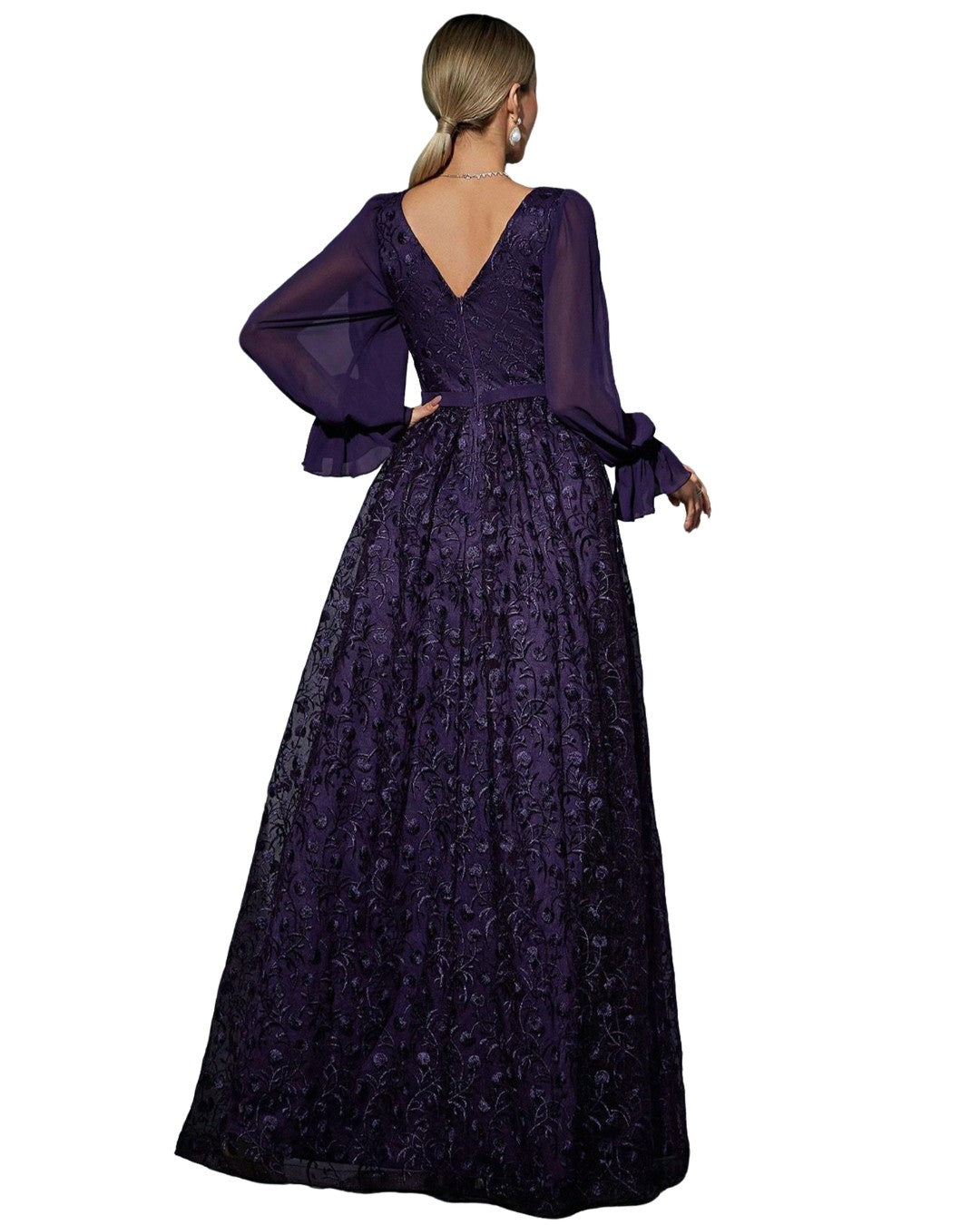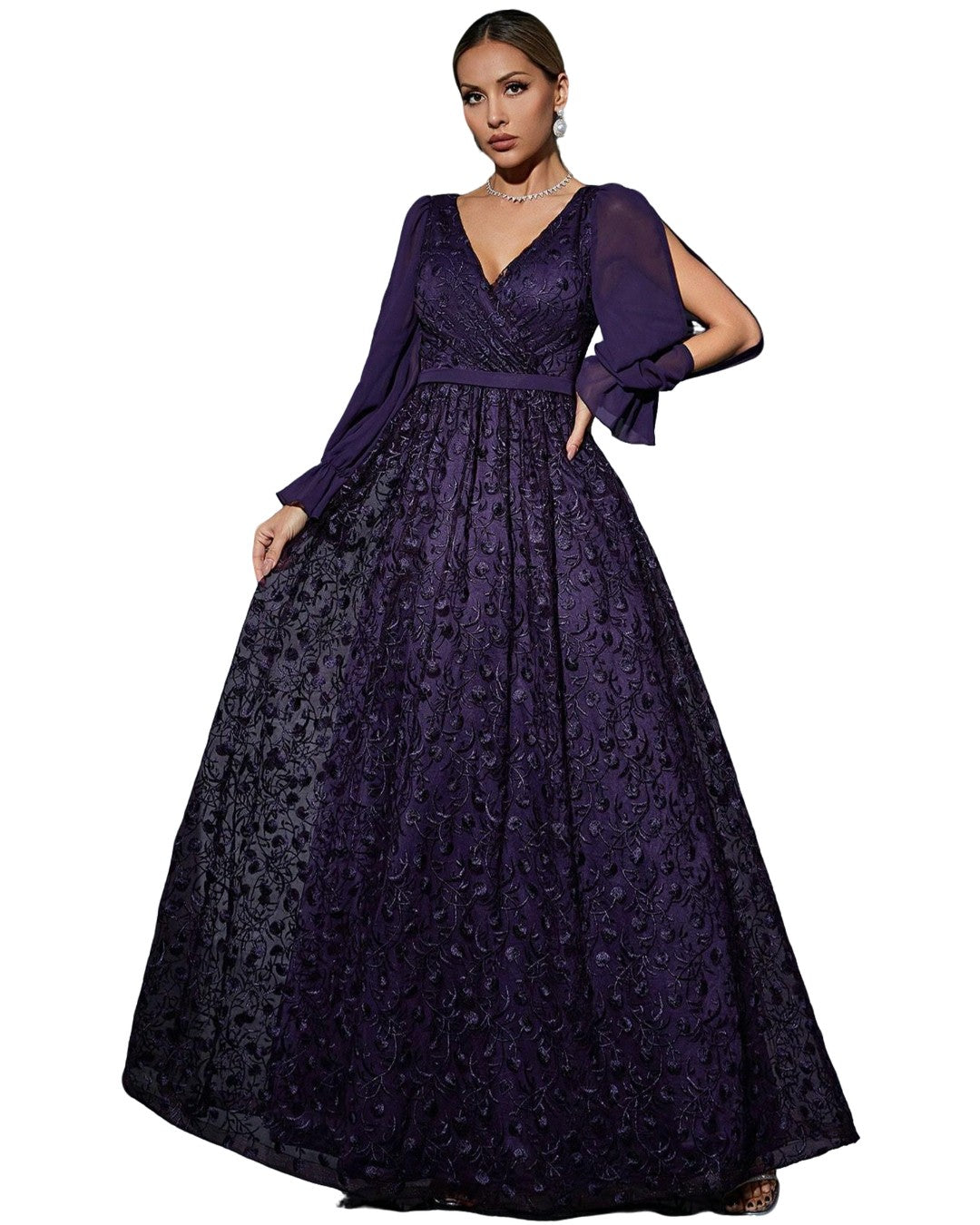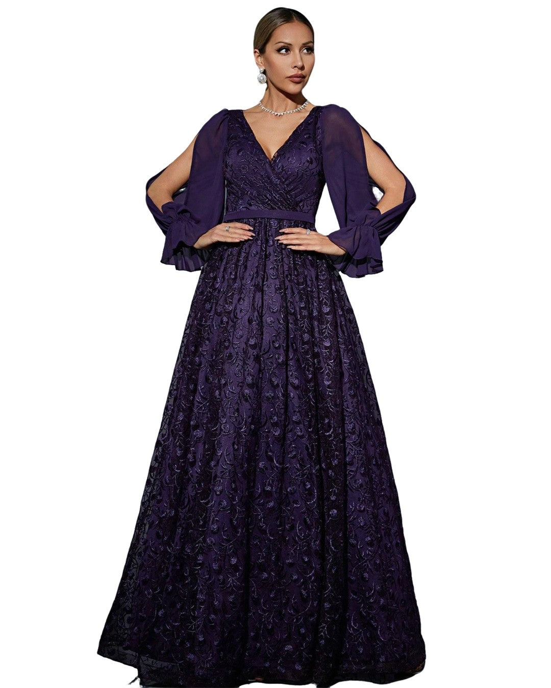 Elegant maxi dress with lace patchwork, delicate embroidery, daring cutout details, and a flattering slim fit for refined occasions.
