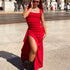 Effortless elegance defines this asymmetric maxi dress, featuring ruffle details and a refined slim fit. Perfect for formal evenings and special occasions.